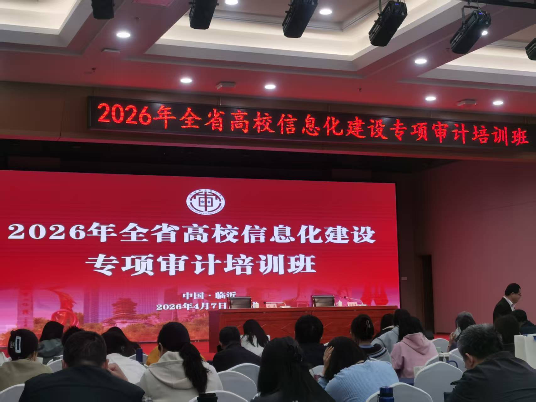 4月8日,由山东省教育审计学会主办的全省高校信息化建设专项审计培训班在临沂正式开班。来自全省高校的分管领导及审计、信息化等部门的320余名学员参加培训。审计处处长刘霄及部门相关同志参加了此次培训。
